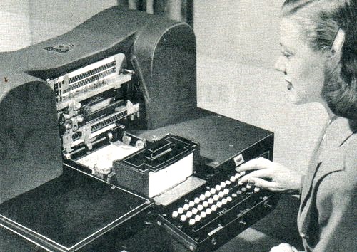 With these machines, alpha-numeric data was punched into the cards in the Remington-Rand code (RR),