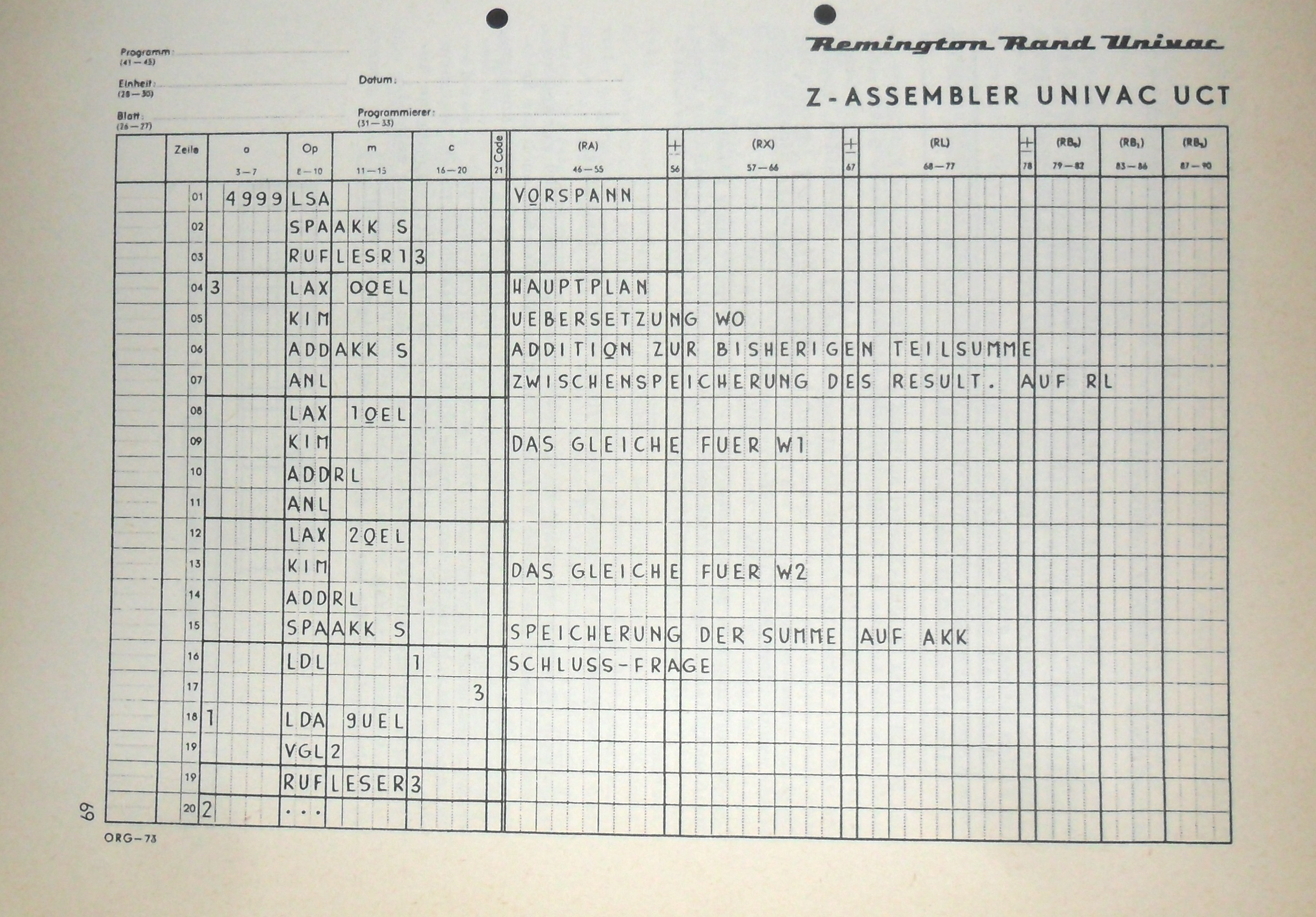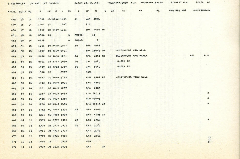 The subroutine was then entered on address 0400 and this 23-instruction was placed in rA.